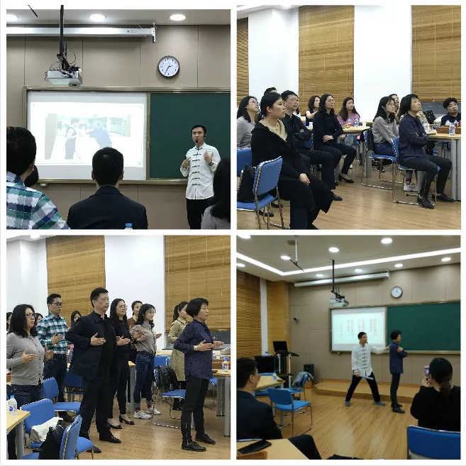 在av动漫 学生讲解员的带领下,双方参观了上海中医药博物馆,领略了中医药的历史渊源、传承脉络与现代发展。随后,推拿基础教研室讲师、五支部党员秦元老师作了题为《少林内功与脊柱健康》的科普讲座,并与学生党员一起,现场教授一些简便易学,适合在办公环境下对颈椎、胸椎、腰椎进行自我保健的动作,以用于预防脊柱的慢性劳损。通过富有特色的中医药文化体验,考试院的党员同志们直观感受到了中医药的文化魅力,以及在现代社会慢性疾病健康管理中的独特优势与鲜活生命力。