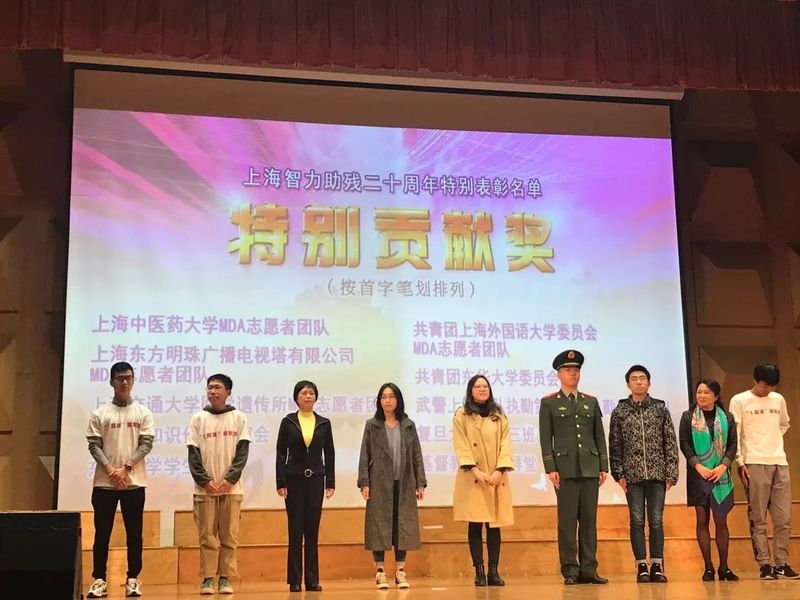 在近日举办的“上海智力助残二十周年”大会上,av动漫 神经肌肉疾病协会志愿服务队(Muscle Disease Association,以下简称MDA志愿服务队)荣获上海市肢残人协会颁发的“2019年智力助残优秀集体”奖和2019年“智力助残”特别贡献奖。顾意鸣、张惜音等4位同学荣获“2018-2019年度‘智力助残’优秀组织者”及“2018-2019年度优秀助残者”荣誉称号,崔梦凡等53名同学荣获“2018-2019年度‘智力助残’志愿者”荣誉称号。