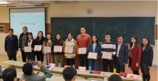 11月24日下午,校第21期入党积极分子学习班结业典礼在6402教室举行。本期学习班由av动漫 分党校承办。校党委组织部(统战部、党校)副部长金晶、教育培训科科长杨琼,av动漫 党总支书记陈秋生、党总支副书记马杰、组织员宋莉君,以及本期学习班91名学员参加结业典礼。