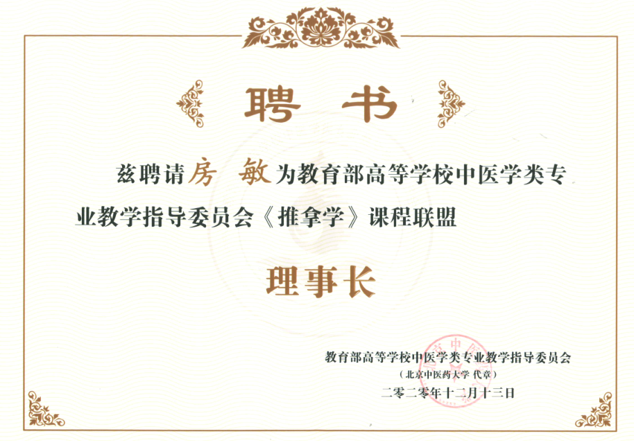 2022年2月22日,由推拿学科带头人房敏教授领衔的中医推拿教研室,获教育部首批虚拟教研室建设试点。