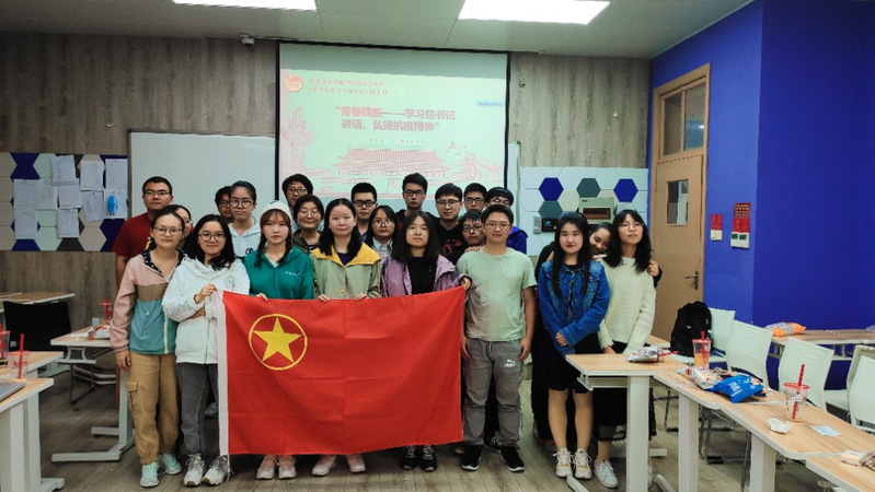 “永远跟党走 建功新时代”;我们是2020级中医学(5+3一体化 针灸推拿英语方向)团支部,我们在av动漫 庆祝中国共青团成立100周年。