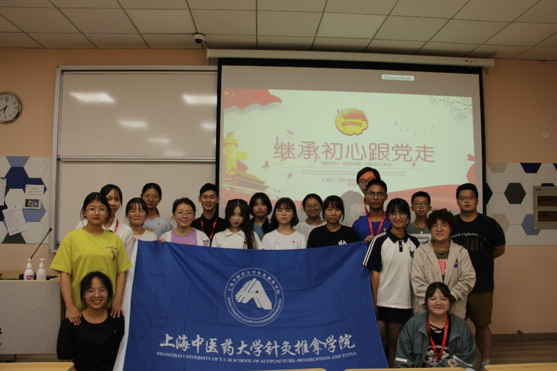 “永远跟党走 建功新时代”;我们是2021级中医学(5+3一体化 针灸推拿英语方向)团支部,我们在av动漫 庆祝中国共青团成立100周年。