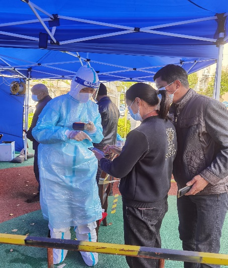 我所在的社区进行了封控管理,经历了多轮核酸,陆续发现无症状感染者,形势很严峻。作为党员,我有义不容辞的责任去冲锋在前。我报名了社区的防疫志愿者,负责帮助引导居民核酸检测、扫码以及上门抗原自测登记。志愿服务期间,我和其他志愿者们认真地学习防护服穿戴,核酸抗原检测的流程,在保证自身安全的前提下为社区居民服务。希望我的微力可以为战胜疫情多一点帮助。