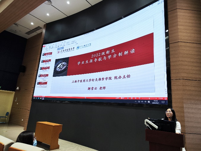 赵琛给全体新生带来了院长第一课“守正创新、笃行远志-为践行健康中国挥洒青春风采”。她希望同学们提前做好在校期间的学业生涯规划,勤学习、多实践、善钻研,融会贯通各项知识与技能,早日成为卓越的针灸推拿医师或医工结合专业人才。