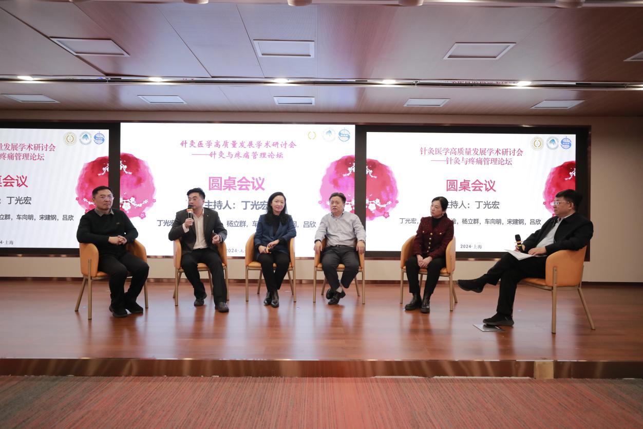 在圆桌会议环节,丁光宏、赵晶、杨立群、车向明、宋建钢、吕欣就针灸与疼痛管理进行了热烈而富有建设性的讨论,会议由丁光宏教授主持。杨立群主任指出要跳脱出西方医学的范畴,转换视角,拓展本学科领域,推动临床麻醉发展。车向明主任表示,鉴于针刺麻醉的临床优势性,需要进一步促进麻醉和针灸领域的交叉融合和临床应用。赵晶主任表示,在未来的研究中,我们要进一步探索针灸如何通过刺激躯体神经影响内脏功能,使针灸的临床应用更具生命力。吕欣主任提出,针灸可以在术前、术中、术后进行全期干预,做到减毒增效、保护脏器功能的作用,具有良好的应用前景。宋建钢主任表示,把麻醉和针灸结合在一起,这是一种多学科的融合,在实践应用的过程中,我们要多向中医内科、针灸、康复、护理的同道学习请教,走向多学科融合。各位专家的观点和建议不仅丰富了我们的讨论,也为我们指明了针灸镇痛医学未来发展的方向。
